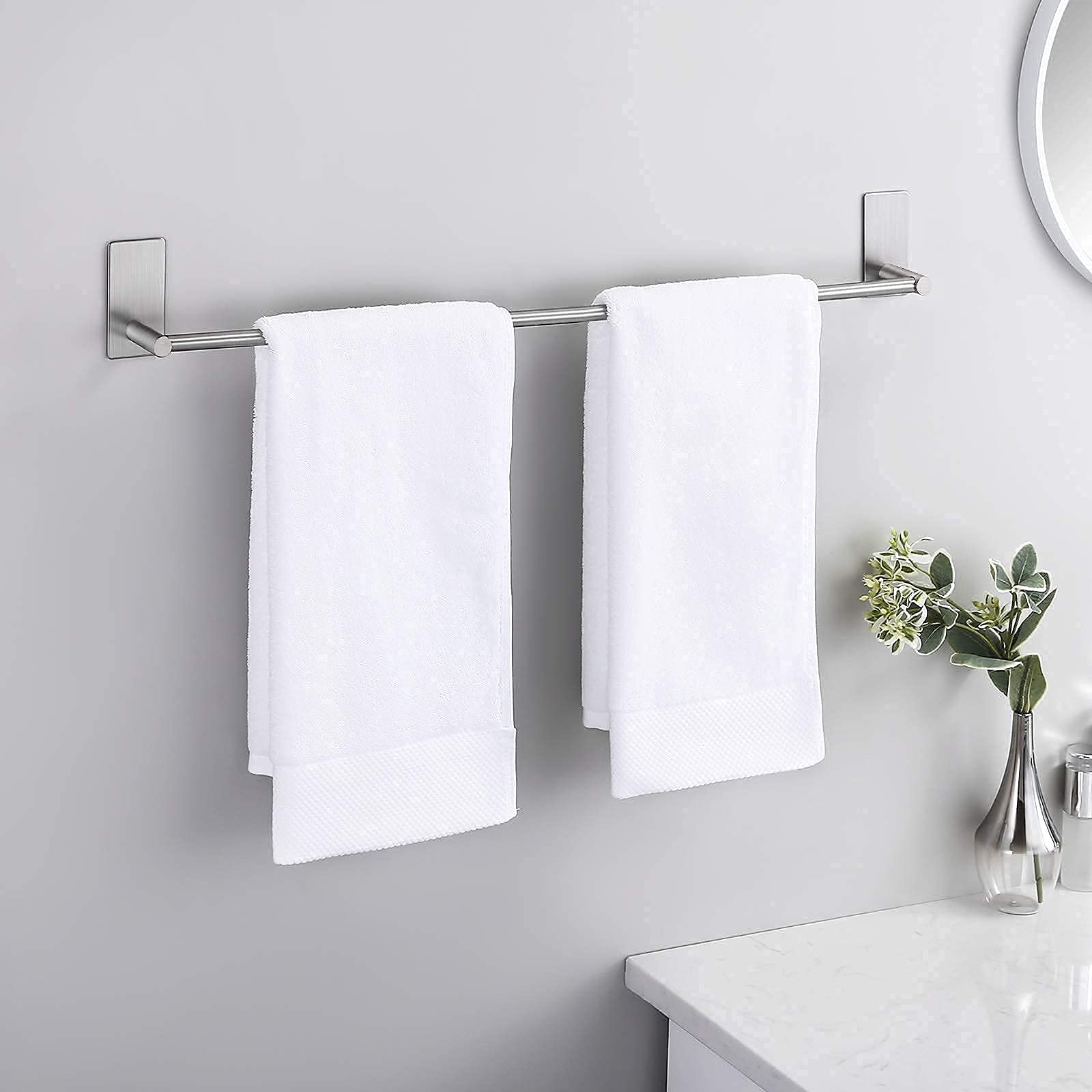 Amazon Com Kes Bathroom Towel Bar 24 Inch Self Adhesive Towel Bar And Bathroom Modern Adhesive Hand Towel Holder Sus 304 Stainless Steel Stick On Wall No Drill Brushed Finish A7000s60b 2 Bth215s20bdm 2 Tools