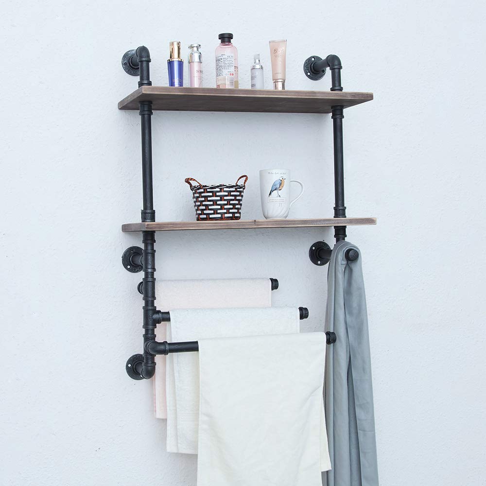 Industrial Towel Rail With 3 Towel Rails 24 Rustic Bathroom Shelf Wall Mounted 2 Tier Black Wooden Pipe Shelf Metal Floating Towel Holder Iron Over Toilet Amazon De Home Kitchen